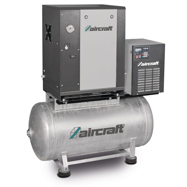 Aircraft Schraubenkompressor mit Rippenbandriemenantrieb auf Behälter mit angebautem Kältetrockner A-MICRO 5.5-10-270 K