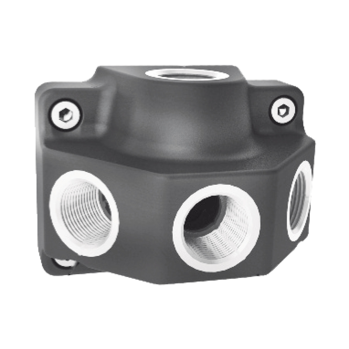 Die Aircraft Kompressorenbau und Maschinenhandel GmbH aus Hohenzell, Österreich, stellt Verteilerdosen her, die einen maximalen Druck von 16 bar aushalten und mit drei Ausgängen ausgestattet sind. Sie bestehen aus Polyamid und Aluminium, haben einen Eingangs- und Ausgangsdurchmesser von G 1/2 ” und wiegen etwa 151 g. Ihre ungefähren Maße sind 86 mm in der Länge, 60 mm in der Breite und 55 mm in der Höhe.
