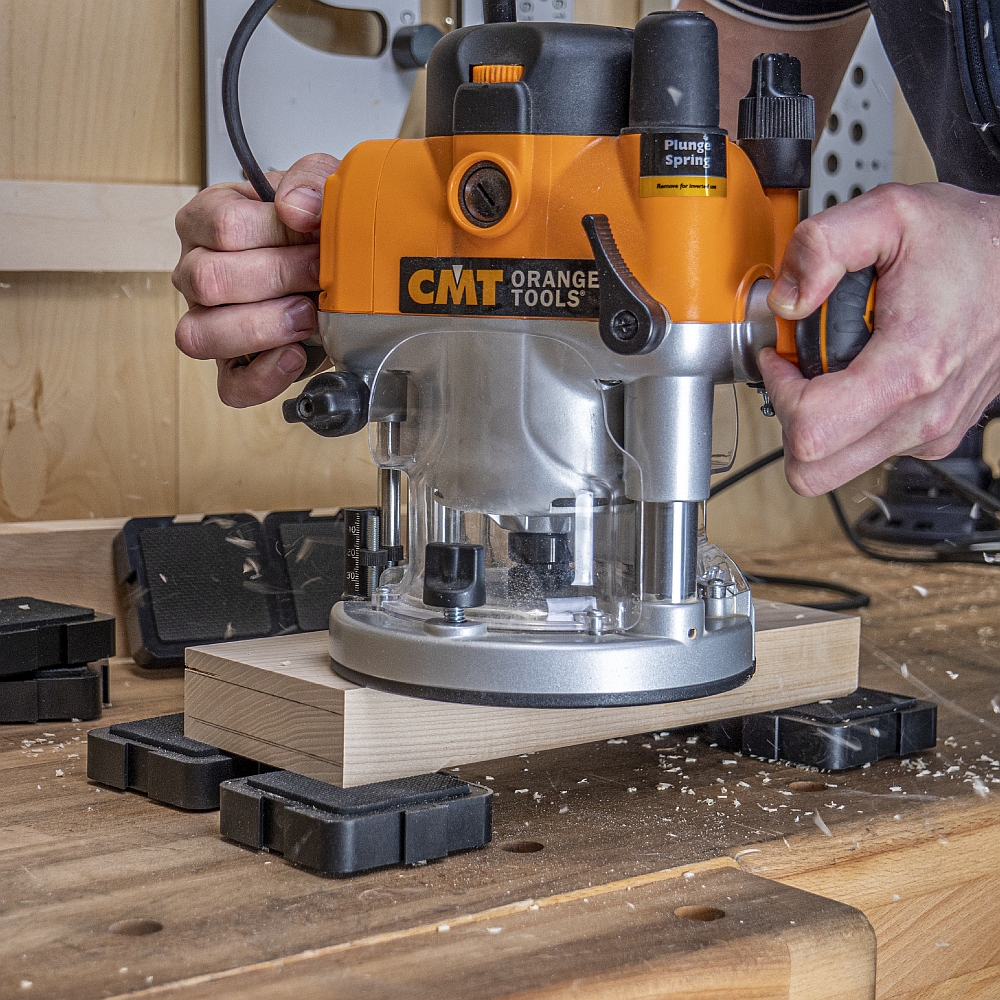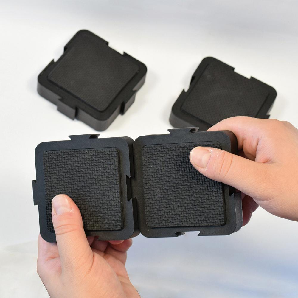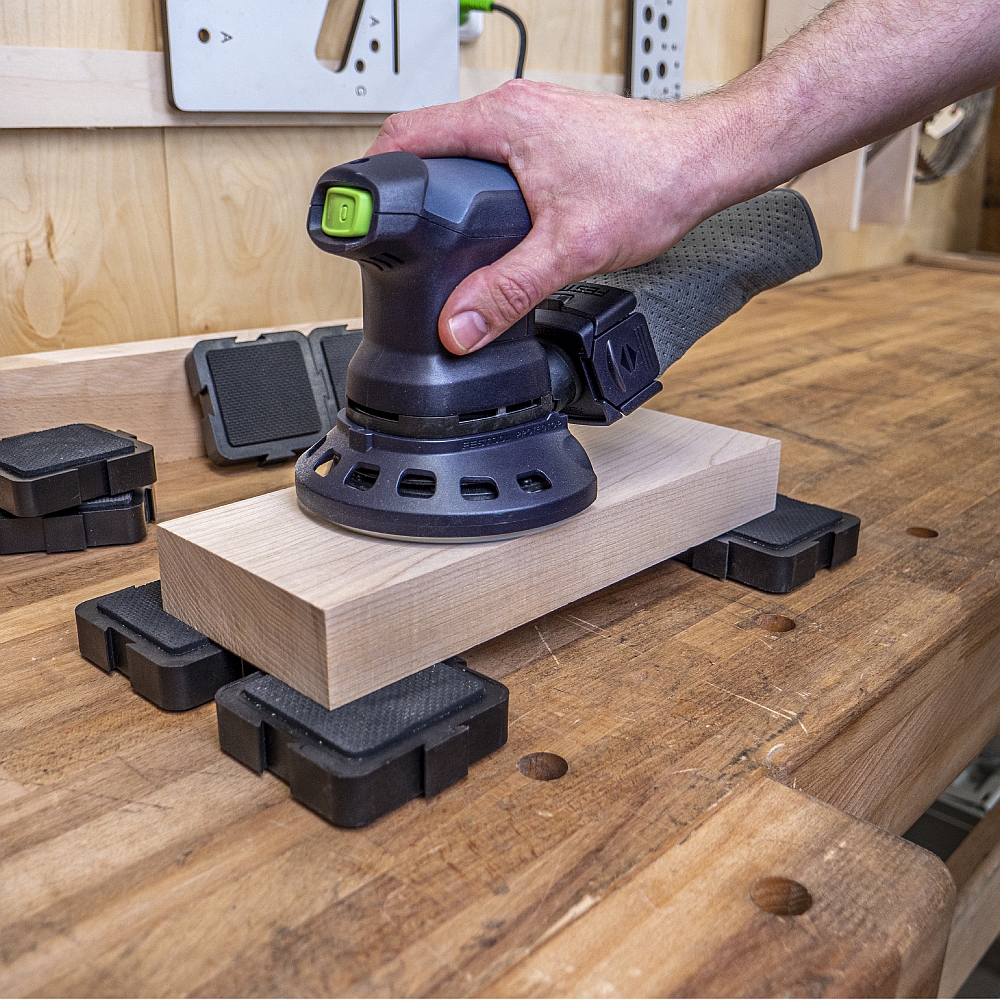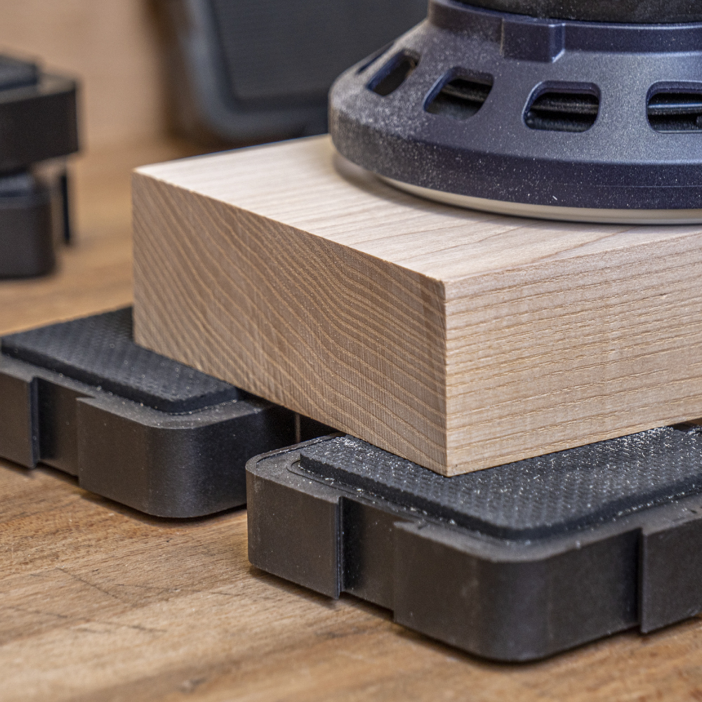 Die Anti-Rutsch Blocks IGM sind zum sicheren Halt vom Material bei der Bearbeitung ohne Klemme geeignet. Die haben eine anhaftende Oberfläche, das Werkstück kann sich beim Schleifen, Schneiden, Fräsen, Bohren, Lackieren und bei anderen Arbeitstätigkeiten nicht bewegen. Das bearbeitete Material wird dank der Anti-Rutsch-Oberfläche auf der unteren und oberen Seite der Unterlage fest am Arbeitstisch gehalten. Der Körper der Blocks ist aus einem festen Kunststoff hergestellt und ist mit Schwalbenschwanz-Bolzen und Fugen versehen, die Blocks lassen sich somit miteinander verbinden, wodurch eine größere Fläche entsteht. Sie hinterlassen keine Klemmspuren und halten hervorragend sowohl auf dem Grundstück als auch auf der Arbeitsfläche.
