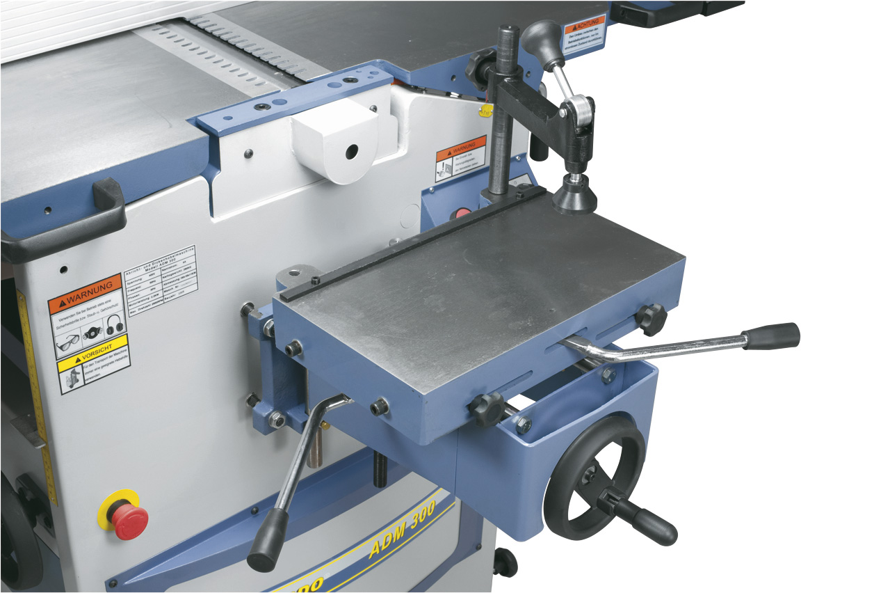 • Seitlich geführter Abrichtanschlag, dadurch kann die Maschine direkt an die Wand gestellt werden