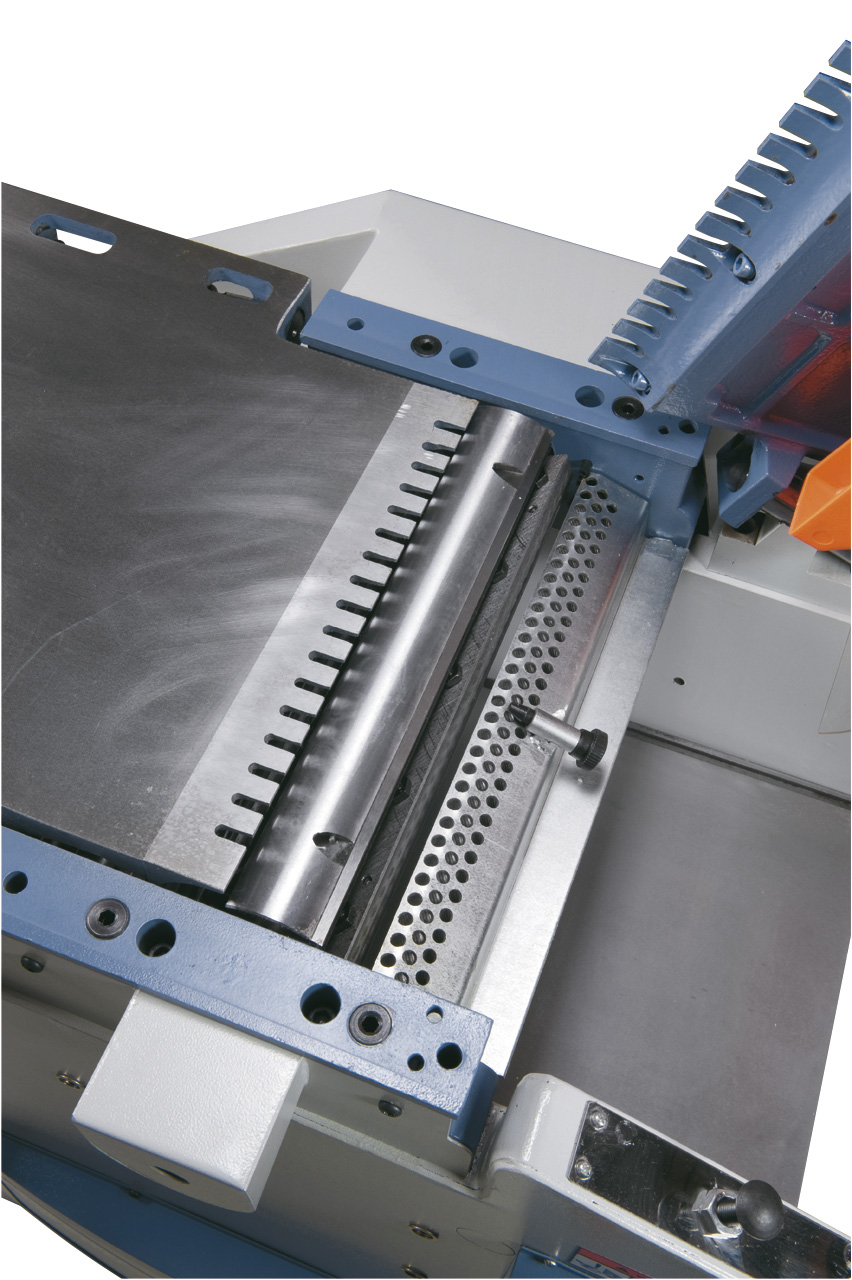 • Spiralverzahnte Einzugswalze für sicheren und gleichmäßigen Werkstückvorschub