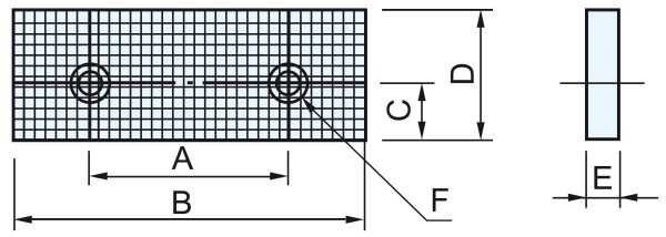 Das Produkt weist folgende Abmessungen auf: A ist 160 mm, B beträgt 250 mm, C misst 35 mm, D ist 80 mm, E hat eine Größe von 21 mm und F beschreibt eine Größe von M12 x 25.