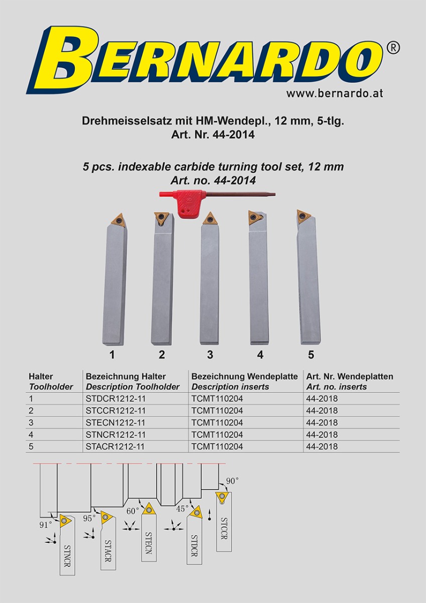 Eigenschaften Bernardo Drehmeißelsatz mit HM-Wendeplatten, 12 mm, 5-tlg.