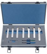 Der 7-teilige Drehmeisselsatz mit TiN-beschichteten HM-Wendeplatten und einer Schaftgröße von 12 mm wird in einem praktischen Aluminiumkoffer geliefert.