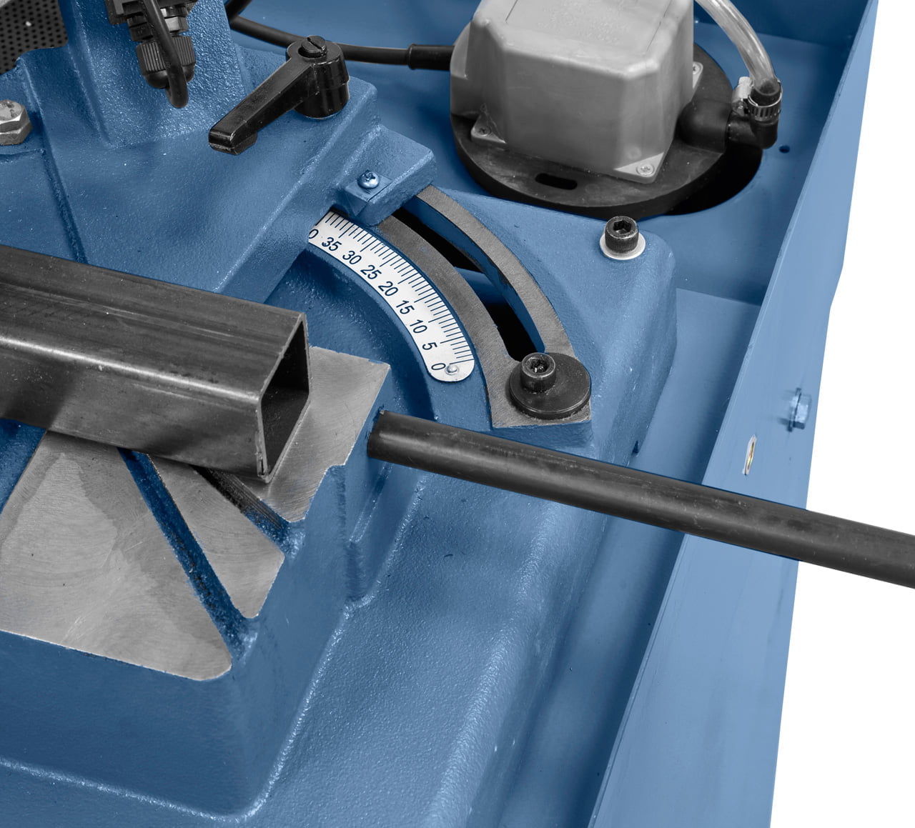 • Verwindungsfreier Sägebügel aus Grauguss garantiert hohe Schnittgenauigkeit