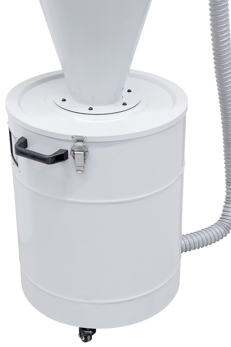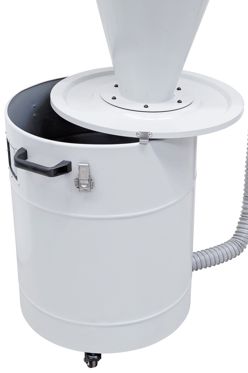 Dieses Feinstaub-Filtergerät ist für eine Vielzahl von Holzbearbeitungsmaschinen einsetzbar und verfügt über einen großen Abfüllbehälter mit 118 Liter Volumen. Mit seinen Maßen von 785 x 508 x 1545 mm und einem Gewicht von 24 kg, ist es dank des integrierten Fahrwerks leicht zu bewegen. Es hat einen Absauganschluss von 1x 125 mm / 2 x 100 mm und einen Auslassdurchmesser von 125 mm / 100 mm. Das Gerät kann gleichzeitig an zwei Maschinen angeschlossen werden und dient zur Reduzierung gesundheitsschädlichen Feinstaubs.
