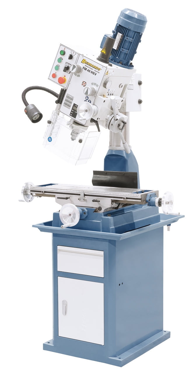Die Bohr- und Fräsmaschine FM 40 HSV ist durch die kompakte Bauweise, dem serienmäßigen Pinolenvorschub, der digitalen Pinolenhubanzeige und dem großen Leistungsbereich für Modellbauer, Handwerker und Reparaturwerkstätten optimal geeignet.
