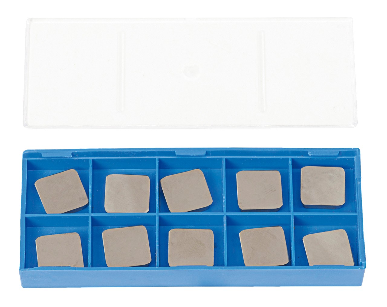 Dieser Satz von 10 Wendeschneidplatten ist kompatibel mit Planfräsern mit einem Durchmesser von 80 mm, 100 mm und 125 mm (Art. Nr. 42-1085, 42-1086, 42-1087).