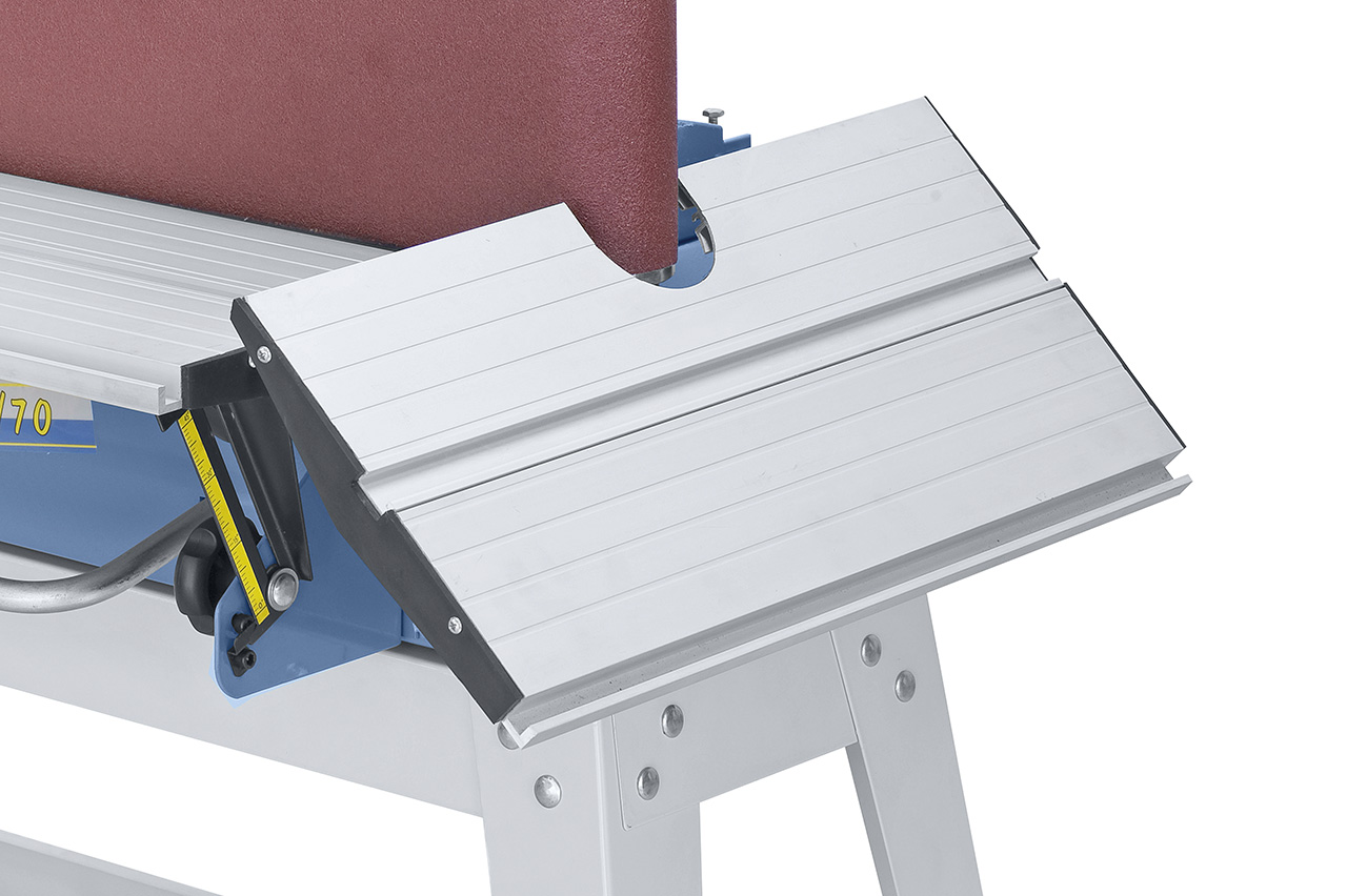• Winkelverstellbarer Zusatztisch zum Konturschleifen serienmäßig