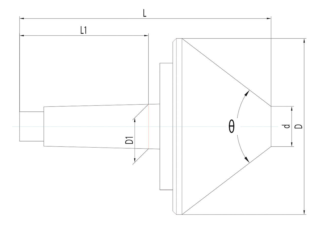 Das Produkt hat die Maße L: 162mm, L1: 81mm, D: 80mm, D1: 23,825mm und d: 25mm mit einem Winkel von 60°. Es ist in verschiedenen Größen erhältlich: MK 2 – 60mm, MK 3 – 100mm, MK 4 – 125mm, MK 5 – 150mm.