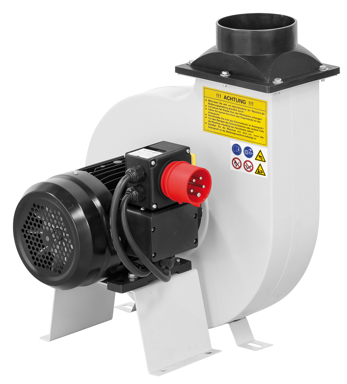 Der Radialventilator RV 350 mit einer maximalen Volumenstromrate von 3900 m³/h und einer Motorleistung von 2,2 kW, ermöglicht den Anschluss von mehreren Holzbearbeitungsmaschinen und kann an der Wand oder Decke montiert werden. Mit seiner stabilen Stahlblechkonstruktion und hochwertigen Pulverbeschichtung, ist er ideal zum Absaugen von Staub, Spänen und anderen Partikeln.