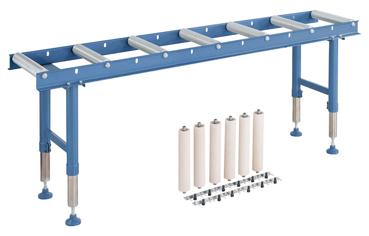 Die Rollenbahn RB 7 ist ein vielseitiges Hilfsmittel für den Transport von schweren Werkstücken mit einer maximalen Belastbarkeit von 700 kg. Sie hat eine Bahnlänge von 2000 mm, Rollenbreite von 360 mm und ist höhenverstellbar zwischen 620 – 1055 mm. Mit nachrüstbaren PVC-beschichteten Rollen ist sie auch für empfindliche Materialien geeignet.