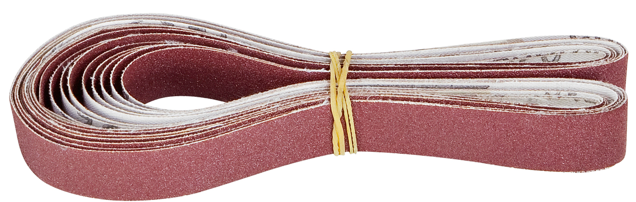 Das Produkt enthält 10 Stück Schleifbänder mit einer Abmessung von 40 x 760 mm und einer Körnung von 120.