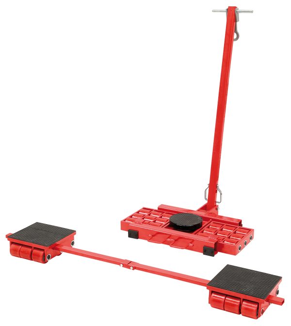 Dieses Produkt hat eine hohe Traglast von 36000 kg und verfügt über eine Drehplatte mit den Abmessungen Ø 200 mm (STF) bzw. 280 x 200 mm (VTR). Die Länge der Lenkdeichsel beträgt 1500 mm (STF) und der Verstellbereich liegt bei 400 – 1500 mm (VTR). Die Abmessungen betragen 780 x 550 x 110 mm (STF) bzw. 300 x 550 x 110 mm (VTR). Zudem hat es 18 Rollen und wiegt etwa 138 kg.