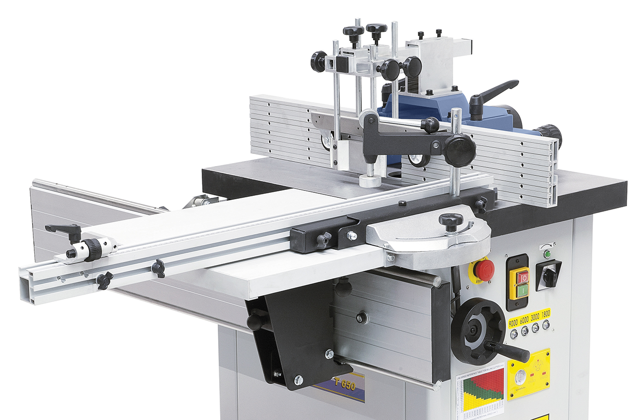 <p>Die Tischfräsmaschine T 650 ist serienmäßig mit 4 Drehzahlen und einem Rechts-/Linkslauf ausgestattet, wodurch eine optimale Anpassung an das jeweilige Werkstück gewährleistet wird. Durch den optionalen Rolltisch wird das Bearbeiten größerer Werkstücke zusätzlich erleichtert.</p>