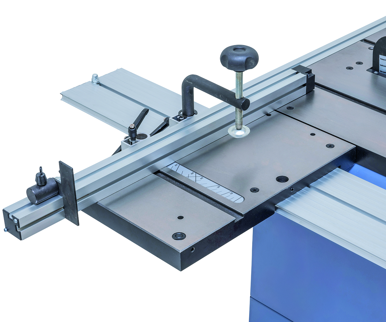 - Bessere Schnittführung am Längsanschlag durch nach links schwenkbares Sägeblatt