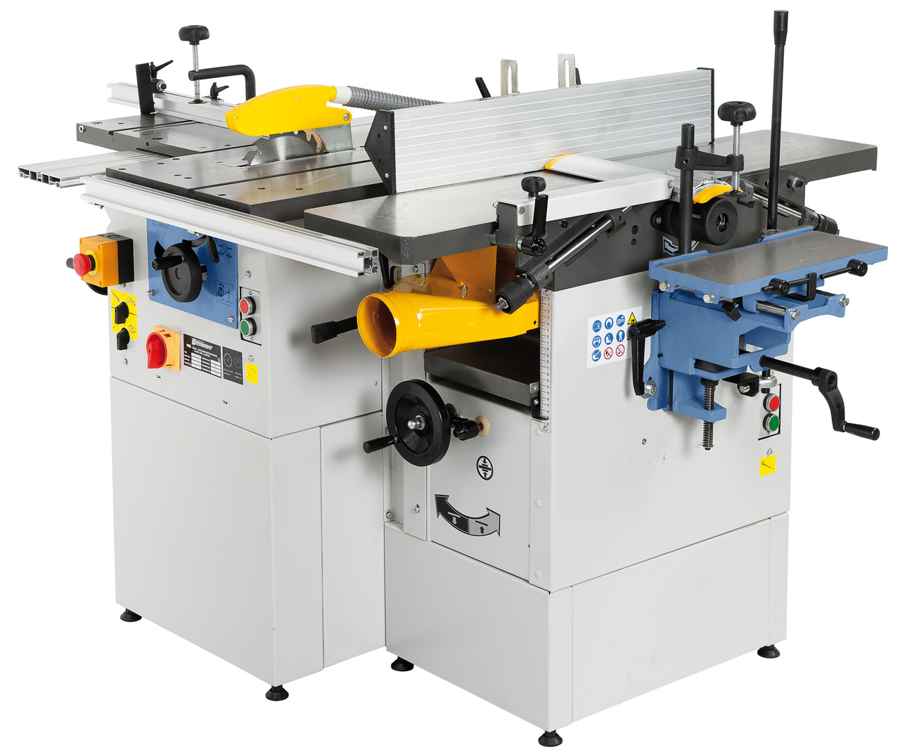 Die Universal-Kombimaschine CWM 250 R ist eine vielseitige und kompakte Maschine mit Rolltisch, ideal für Hobbybastler und Heimwerker. Sie bietet Eigenschaften wie vibrationsfreies Arbeiten dank solidem Graugusstisch, ergonomische Handradverstellung und erhöhten Bedienkomfort durch den serienmäßigen Rolltisch. Die Maschine hat eine Abgabeleistung von 1,5 kW und eine Aufnahmeleistung von 2,1 kW. Sie ist optional mit einer Langlochbohreinrichtung erhältlich.
