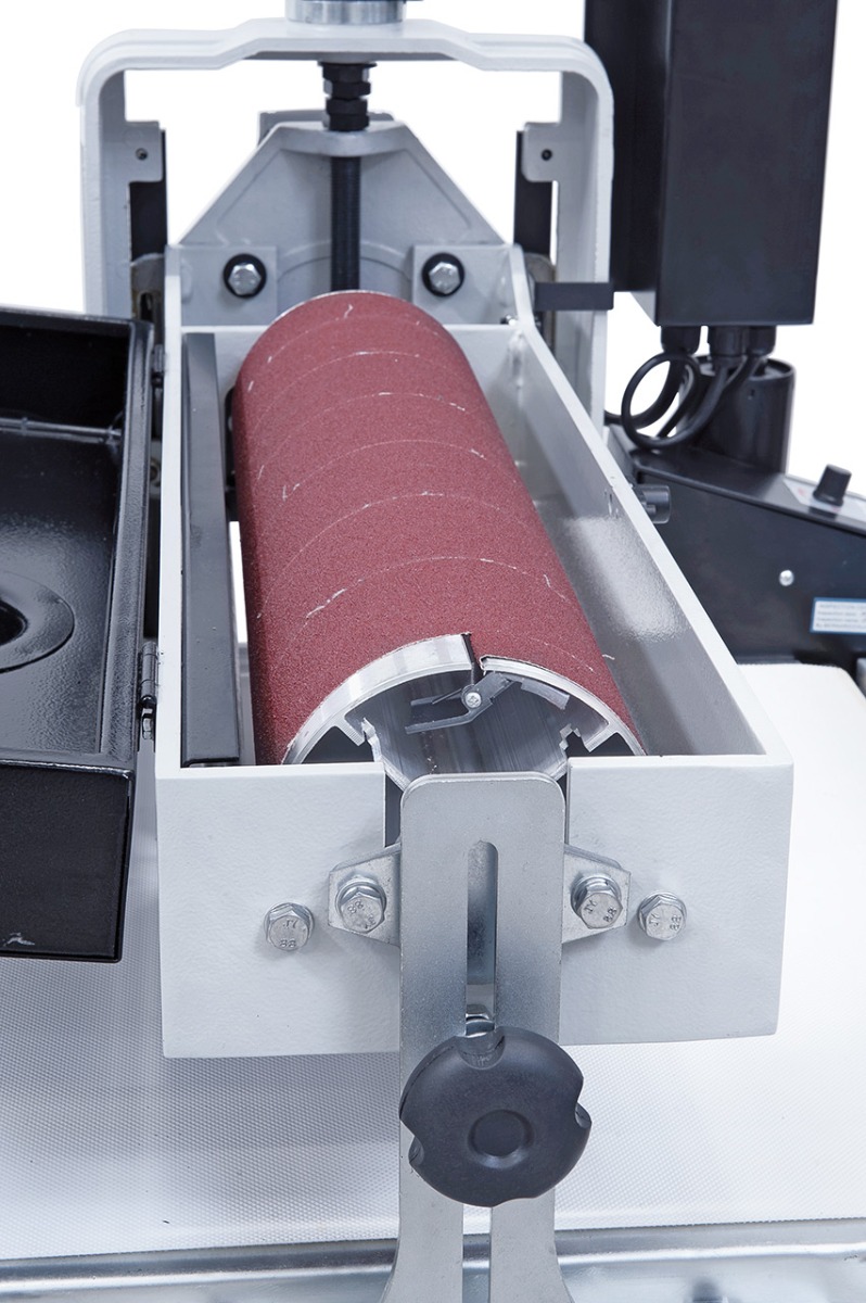 • Bei Nichtverwendung der seitlichen Abstützung kann man in zwei Schleifdurchgängen die Maschine bis zur doppelten Schleifbreite nutzen, z.B. für Rahmen, etc.