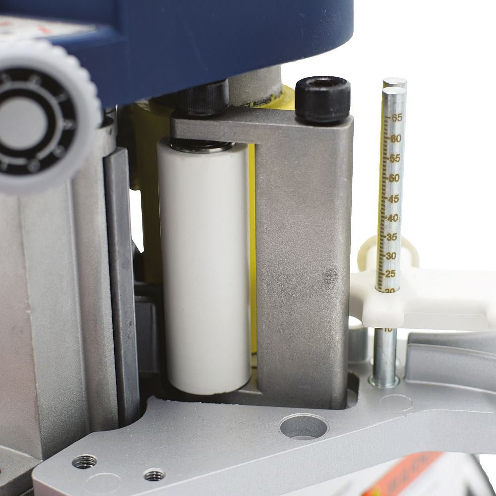 • Solide Führung des glatten Auflagetisches mit einer Skala zur Einstellung der Werkstückdicke.