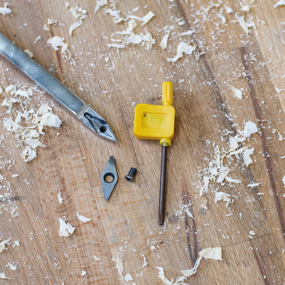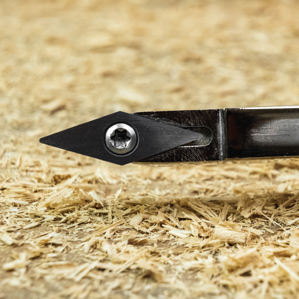 Das IGM Drechselmesser-Set enthält 4 Meißel mit vier Arten von Schneiden – quadratisch, quadratisch abgerundet, rund und Diamant. Eine quadratische Schneide wird zum Aufrauen von Material und zum Erstellen von Zapfen verwendet. Mit einer quadratischen, abgerundeten Schneide können Sie auch Material aufrauen und abgerundete Zapfen erstellen. Die runde Schneide eignet sich zum Schruppen oder Drehen von Kurven. Anschließend können Sie mit einer Diamantschneide Rillen und andere dekorative Details ausarbeiten. Schneinden bestehen aus Hartmetall mit einer sehr langen Lebensdauer und müssen nicht geschärft werden. Wenn die Schneide abgenutzt ist, drehen Sie einfach die Klinge. Wenn die Kante rundherum stumpf ist, ersetzen Sie die Schneide.