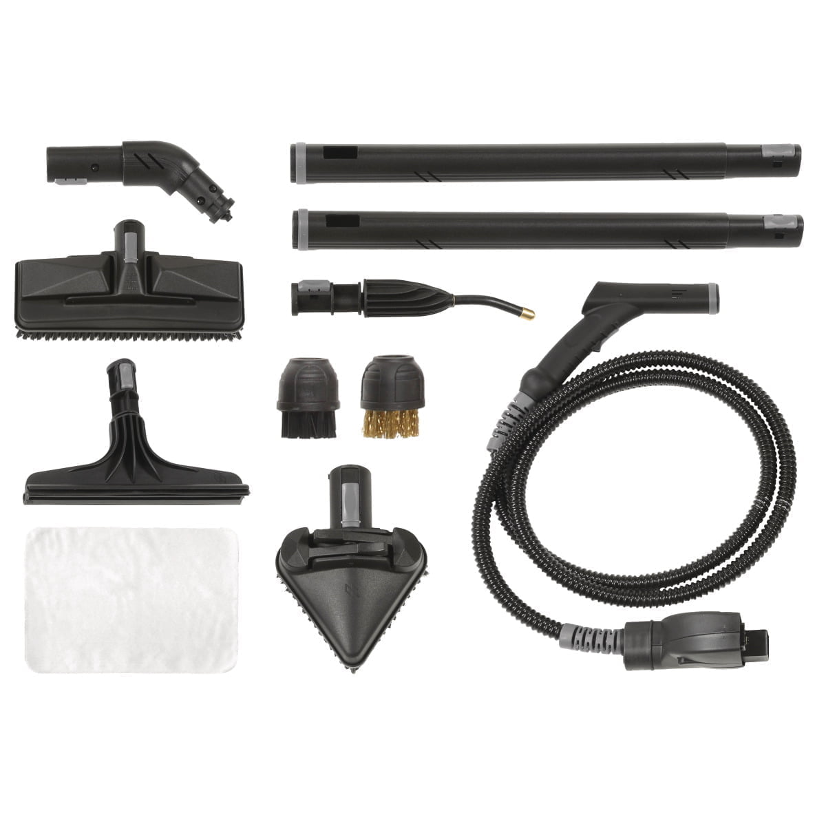 • Zahlreiche Düsenaufsätze zum Reinigen von Glasscheiben, Tischen, Schränken, Nischen oder auch Stangen und Türgriffe im Lieferumfang