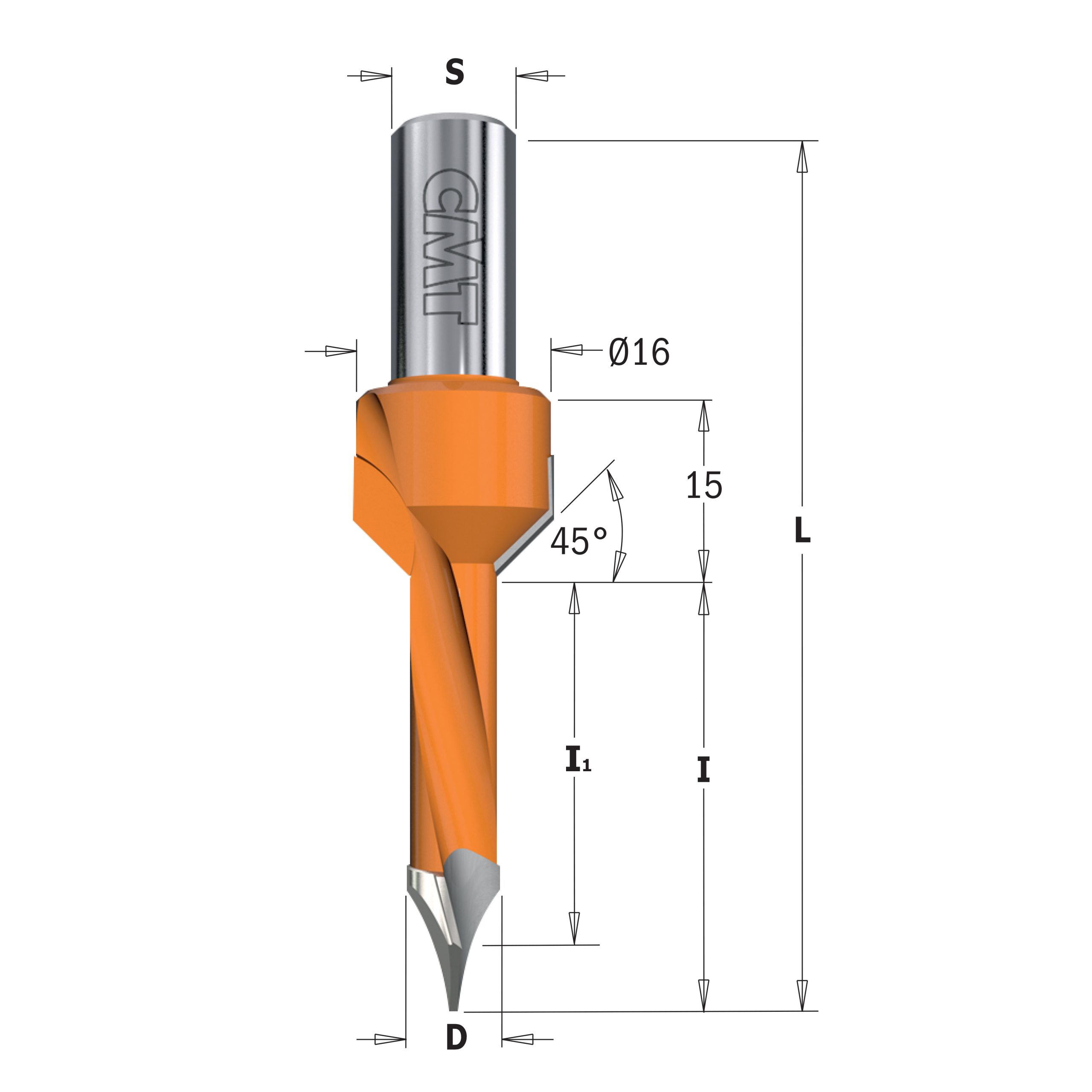 Startseite » Shop » CMT 378 Dübelbohrer für Durchgangslöcher mit Senker S10 L70 HW – D8x35 D2=16 S=10×20 LH