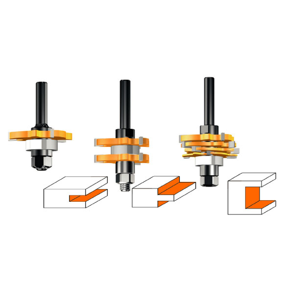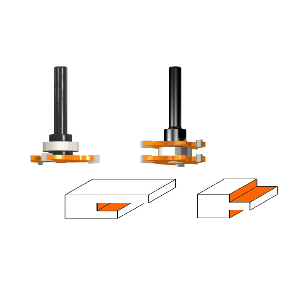 Mit diesen Sets können Sie von einer Vielzahl an praktischen Anwendungsmöglichkeiten aus einem kompakten Koffer Gebrauch machen. So können Sie mit den in den Sets inbegriffen Fräsern beispielsweise Schlitze, T-Nuten und Falze in alle Holzwerkstoffe fräsen. Die untenstehenden Einsatzbeispiele geben eine Übersicht über mögliche Fräserkombinationen sowie deren Aufbau. Ideal für Lamello-Verbindungen und zum Fräsen von perfekten Nut- / Federverbindungen. Die mitgelieferten Kugellager ermöglichen Schnitttiefen von 7,95mm, 9,55mm, 12,8mm und 14,3mm. Die Sets werden in hochwertigen, bruchfesten Kunststoffkoffern geliefert.