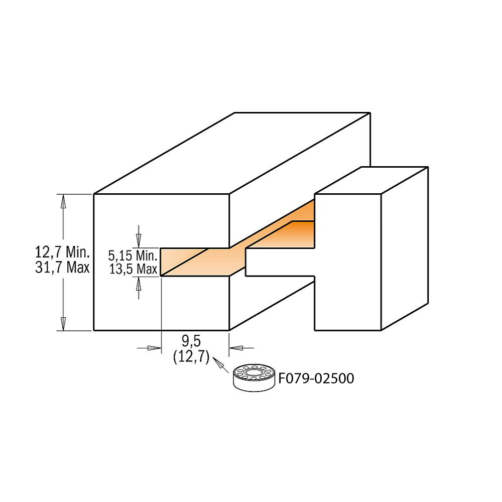 Exklusives Design. Nur mit dem CMT-Türfrässet kann eine ideale Tür mit gerader Sperrholzfüllung hergestellt werden. Für Weich- und Hartholz oder Sperrholz. Standardstift 9,5 mm lang. Durch den Wechsel des Lagers von einem Durchmesser von 22 mm auf ein Lager mit einem Durchmesser von 16 mm (Code F079- 02500) erreichen Sie eine Verlängerung der Stiftlänge auf 12,7 mm. Nur für den Einsatz im Frästisch vorgesehen. Nicht zum manuellen Fräsen bestimmt.