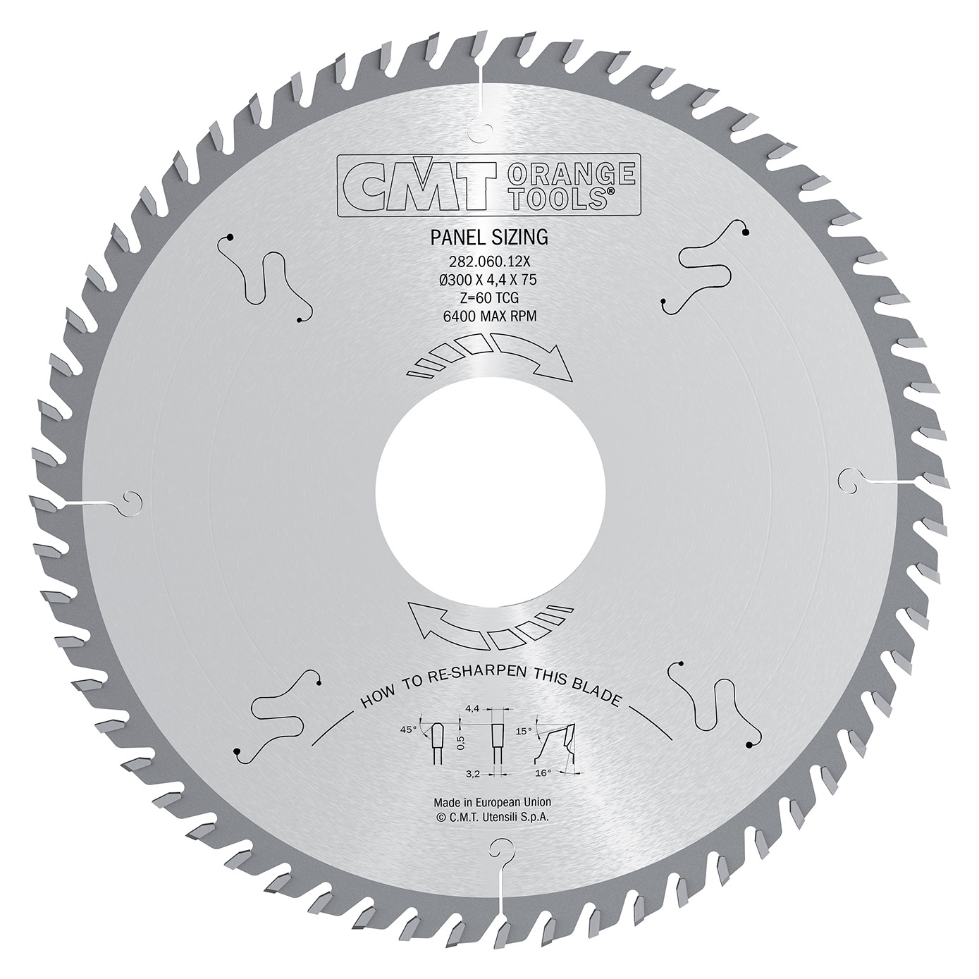 CMT Industrielle Kreissägeblätter für Druckbalkensägen – D355x4.4 d65 Z72 16° HW