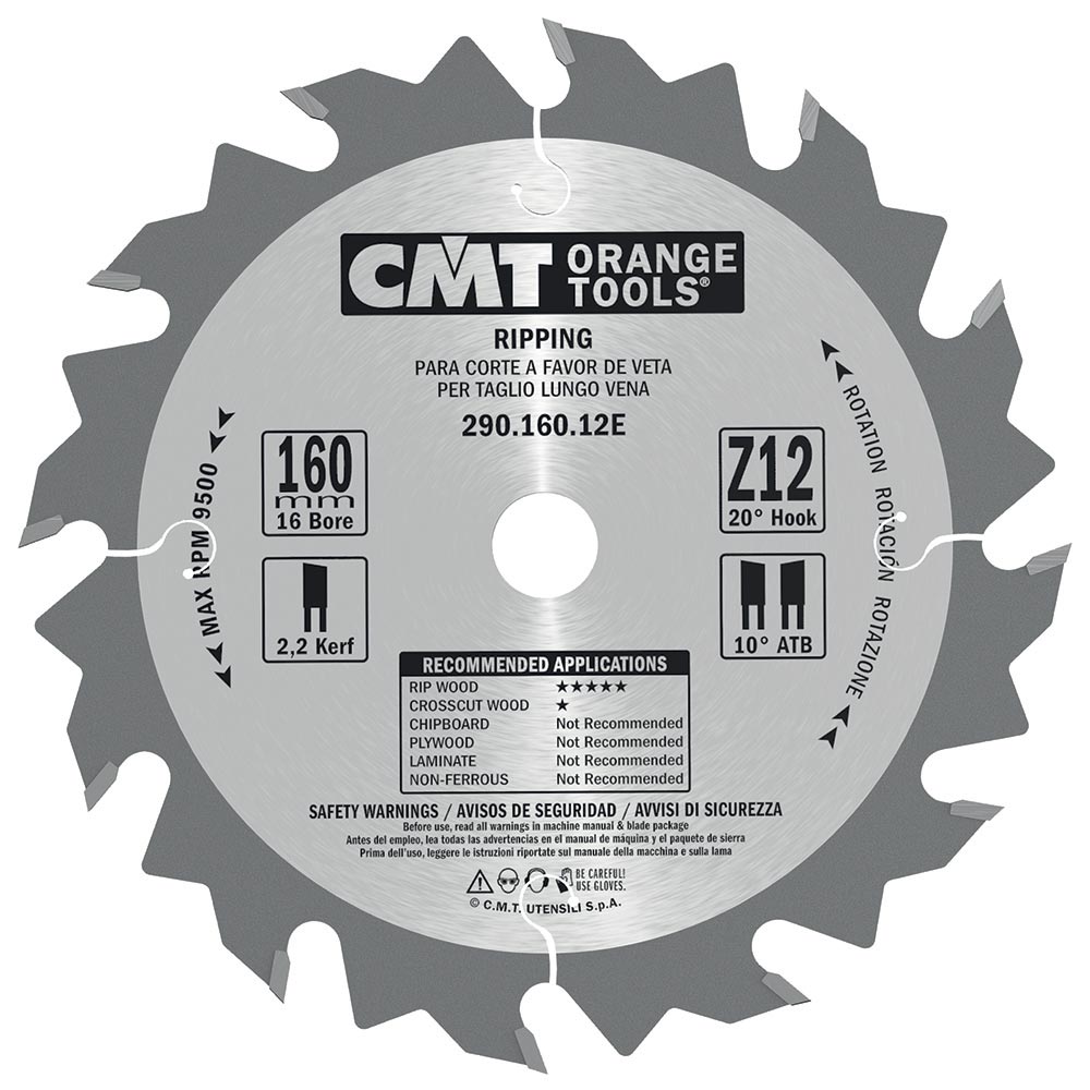 CMT Kreissägeblätter für Längsschnitte, für Handkreissägen – D160x16 Z12 HW