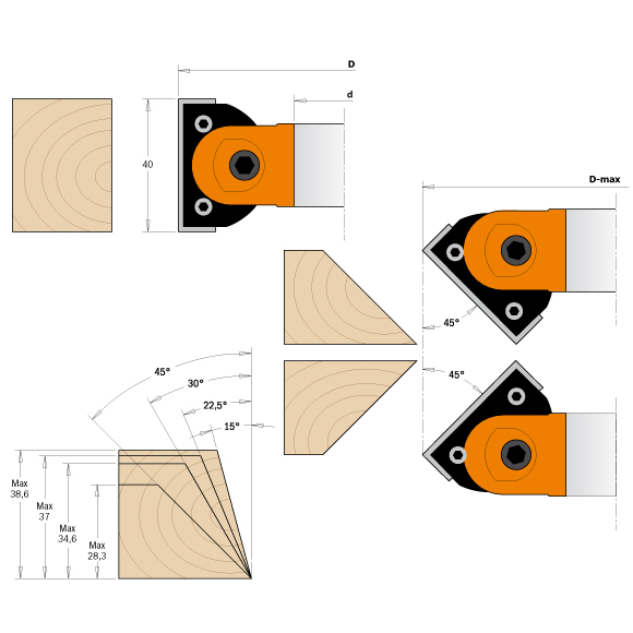 Diese Messerköpfe sind für das Anfasen und für Verbindugen auf massivem Holz besonders geeignet.