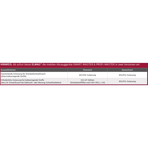 Ausreichende Zulassung für Standardschweißrauch (ohne krebserregende Stoffe)