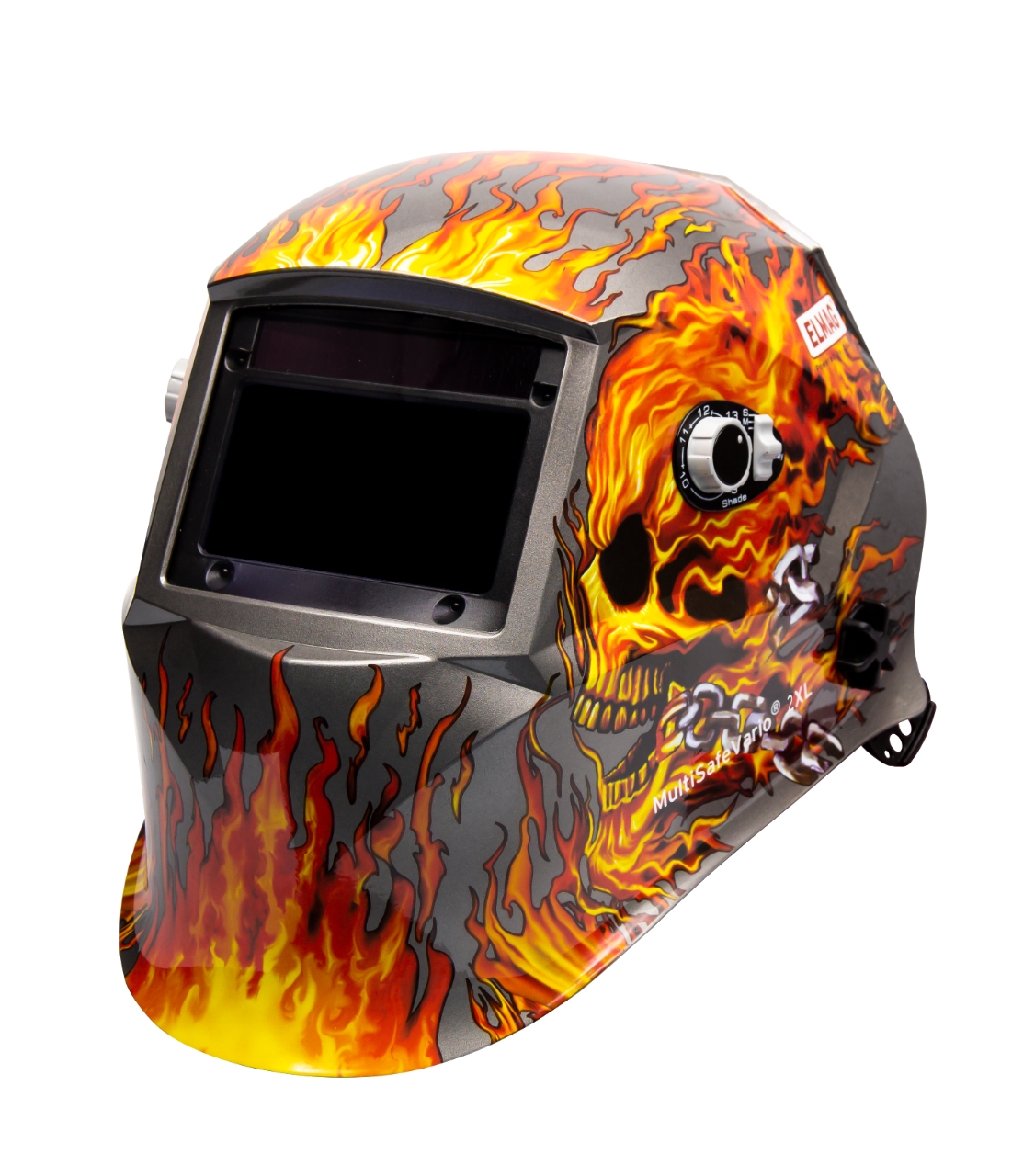 Startseite » Shop » Schweissen » Zubehör Schweissanlagen » Elmag Automatik-Kopfschweißschirm, Design ‘FLAME’