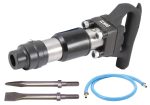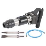Das schwere Industriemodell ist ideal für Durchbrüche und Abrissarbeiten, dank seiner hohen Verschleißfestigkeit und seiner Ausstattung mit einem Stahl-Meißelhammer. Trotz einer geringen Schlagzahl von 1920 Schlägen pro Minute, liefert es dank seines 94 mm Hubs eine beeindruckende Leistung. Zusätzlich verfügt es über Flach- und Spitzmeißel aus Chrommolybdänstahl (250 mm Länge) und einen Antivibrationsschlauch. Mit einem Betriebsdruck von 6,3 bar, einem Luftbedarf von 940 l/min und einem Luftanschluss von 3/8 Zoll, erreicht es eine Vibration von 13,46 m/sec² und einen Schalldruckpegel von 94 dB(A) bei einer Länge von 400 mm und einem Gewicht von 8,4 kg.