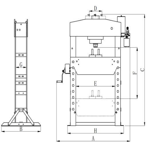 Das Säulenmodell zeichnet sich durch eine beeindruckende Pressleistung von bis zu 20t aus und bietet eine manuelle Höhenverstellung mittels Presstischwinde. Die Besonderheit liegt in dem präzisen Hydrauliksystem, das durch eine Handpumpe bedient wird, und in dem längs verschiebbaren Hydraulikzylinder. Zudem ist der Hydraulikzylinder seitlich verstellbar und das Gerät verfügt über zwei Antriebsgeschwindigkeiten sowie eine automatische Kolbenrückstellung. Mit einer Maschinenhöhe von 1628mm, einer Maschinenlänge ohne Pumpe von 801mm und einer Maschinenbreite von 560mm ist dieses Modell kompakt und dabei äußerst leistungsfähig.