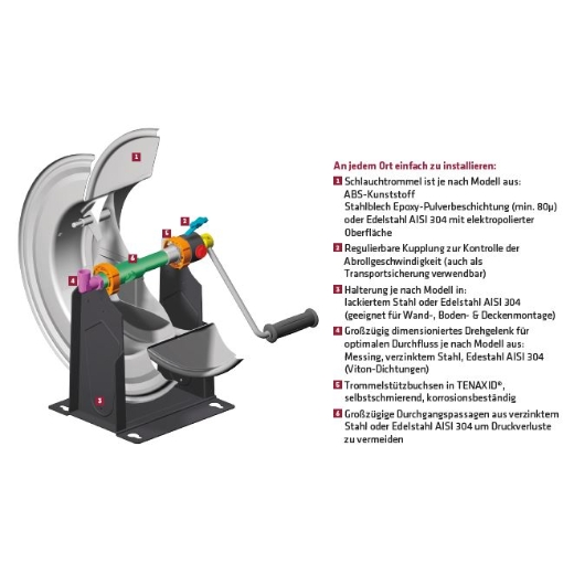 Vorteile Elmag Manueller Schlauchaufroller Edelstahl Serie 560