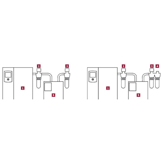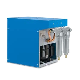 - Druckluft wird durch ein Kältemittelgas gekühlt, wobei das Wasser in der Luft kondensiert, sodass es entfernt werden kann.