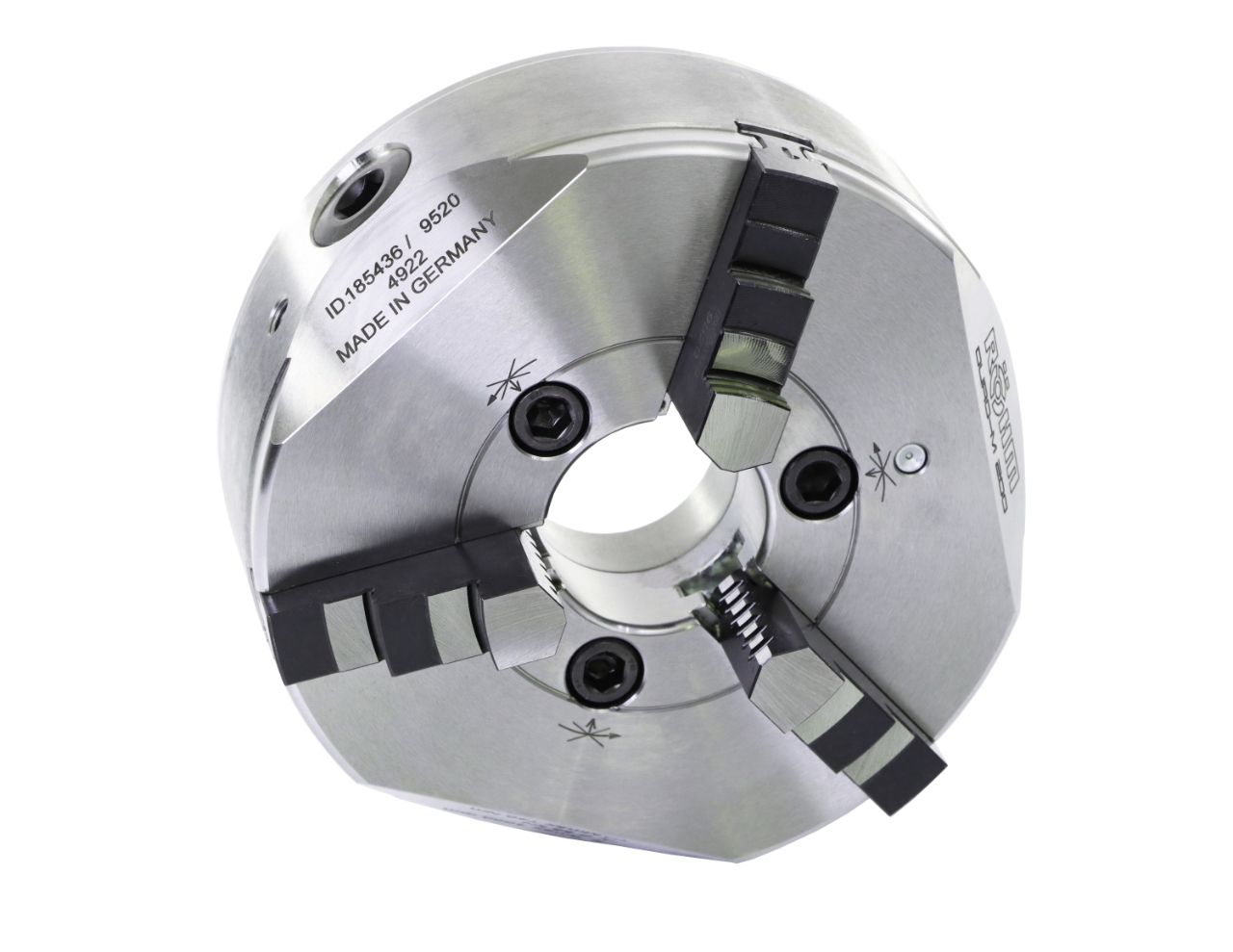 • Mit je einem Satz Bohr- und Drehbacken gehärtet und geschliffen:- 3 bzw. 4 Stück Bohr-Spannbacken BB nach außen abgestuft- 3 bzw. 4 Stück Dreh-Spannbacken DB nach innen abgestuft