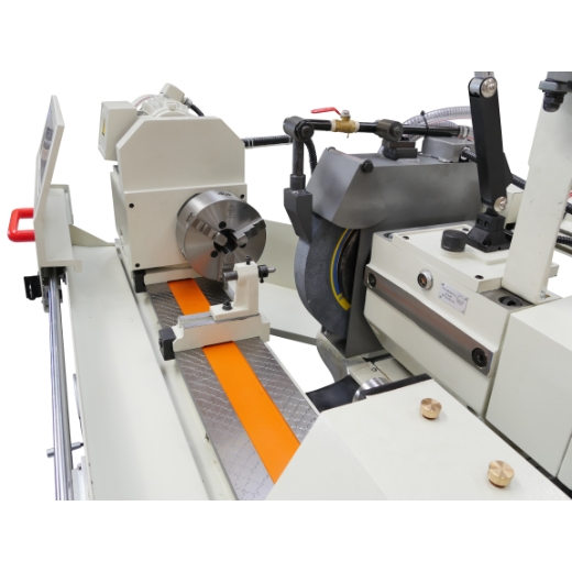 Die Werkstückspannung erfolgt an einem Dreibackenfutter, an einer Mitnehmerscheibe oder zwischen Spitzen. Der Reitstock ist hydraulisch schließbar. Dünne Werkstücke werden durch eine Sehlünette unterstützt. Die Maschine ist mit einem Eilgangsantrieb für die Längs- und Querachse ausgestattet und bietet im Manuell- und Automatikbetrieb eine sehr einfache Bedienung: