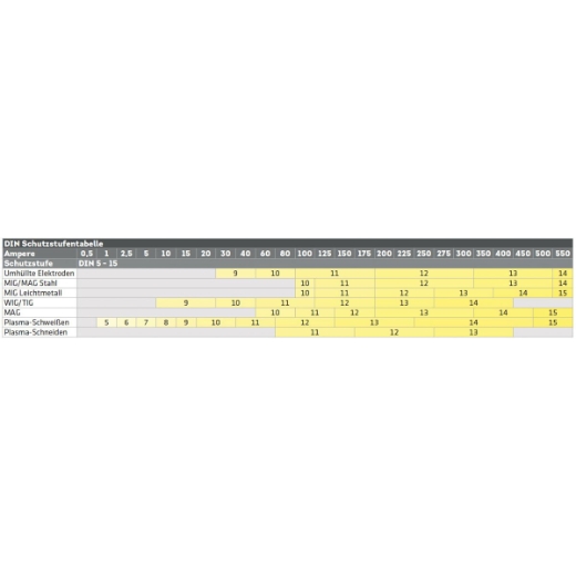 Technische Spezifikationen Elmag Schweißbrillenglas DIN 9
