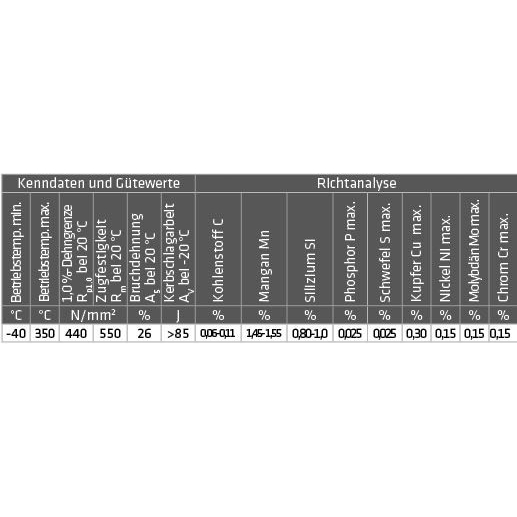 gewiesene Wurzelschweißbarkeit, Betriebstemperatur -40 bis 350 °C. Säuren- und basenbeständig bis 1.200 °C.