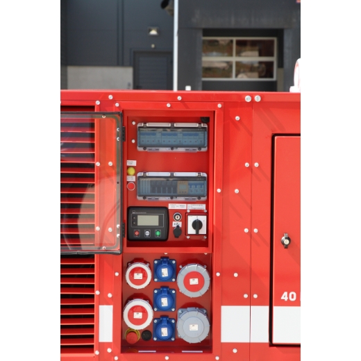 mit KUBOTA-Motor V3800-DIT (super-schallgedämmt)mit elektronischem Drehzahlregler 1500 UpMmit versperrbarer Schalttafelabdeckung und Sichtfenstermit DSE 4520 Automatiksteuermodulmit BENDER Isolationsüberwachung 2 Stufig (Stufe 1 47kOhm, Stufe 2 23 kOhm) Stufe 1 Warnung optisch und akustisch Stufe 2 Warnung und Abschaltungmit Betriebsartenwahlschalter für Umschaltung Anlagenversorgung (TN) Direktversorgung (IT)Steckdosenbestückung: 1x 63A 400Volt 1 Uhr für Anlagenversorgung 1x 63A 400Volt 6 Uhr für Direktversorgung 1x 32A 400Volt 6 Uhr für Direktversorgung 1x 16A 400Volt 6 Uhr für Direktversorgung 3x Schuko 230Volt für Direktversorgung alle Steckdosen einzeln abgesichert alle Steckdosen IP 67mit Erhaltungsladegerät eingebaut samt außenliegendem Anschlussmit dichter Bodenwannemit Tankfüllstandssensor und Anzeige auf Steuermodulmit innenliegendem Tankdeckel mit Entlüftung