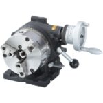 von Werkstücken an einstellbaren Winkelpositionen. Mit Dreibacken-Drehfutter und sechs präzisen Einrastscheiben für die Teilungen 2 x 180°,