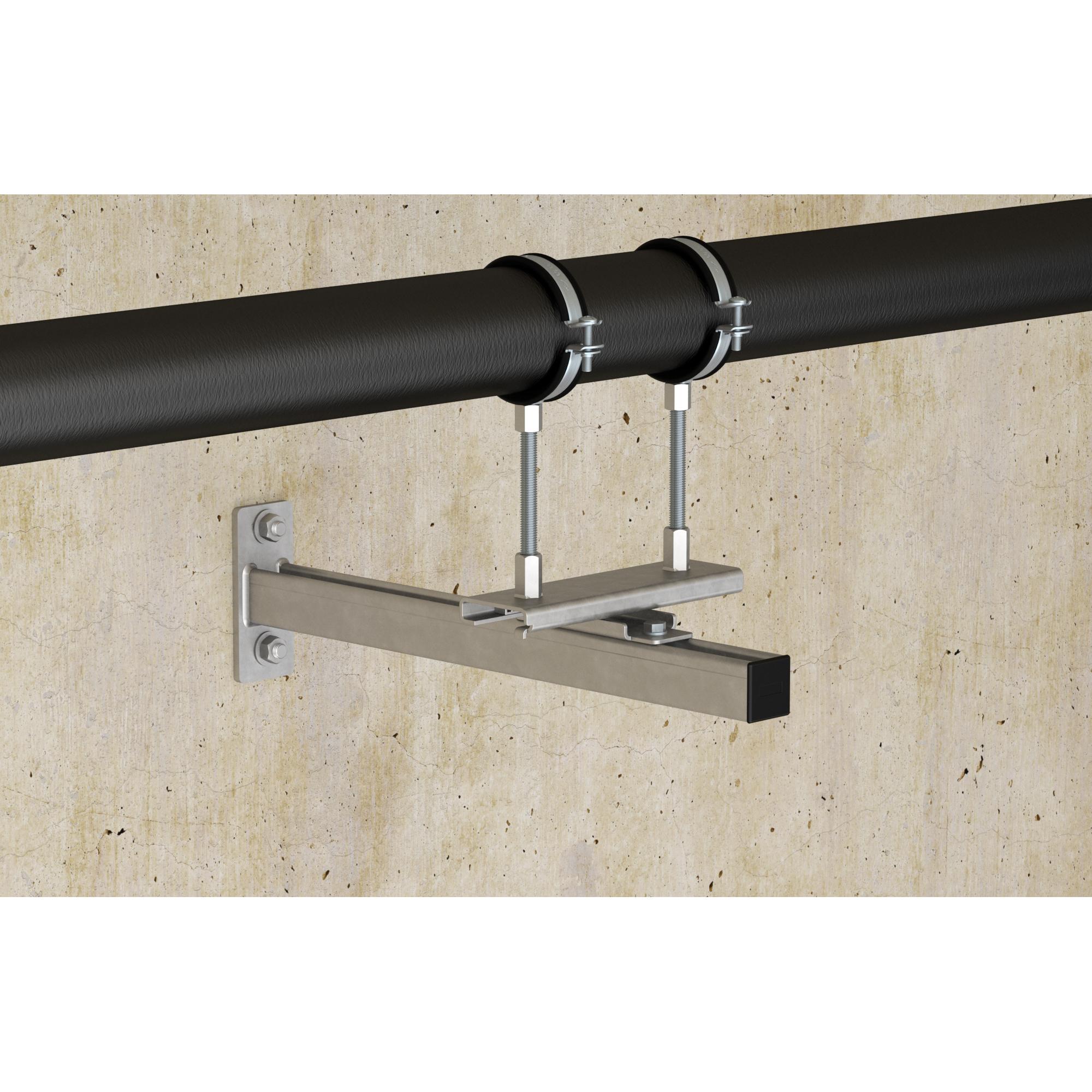 Die Auslegerkonsole FCA ist als zweites Basiselement des Schienensystems FUS für die Befestigung von Installationen wie Rohrtrassen entlang der Wand geeignet. Die Auslegerkonsole wird durch die um 90° zueinander gedrehten Langlöcher in der Grundplatte direkt am Untergrund befestigt. fischer bietet Standardlängen von 200 – 1000 mm, ein Ablängen ist somit nicht notwendig. Dies spart Zeit und Kosten. Der Brandschutznachweis nach MLAR/EN13501 bietet ein Plus an Sicherheit.