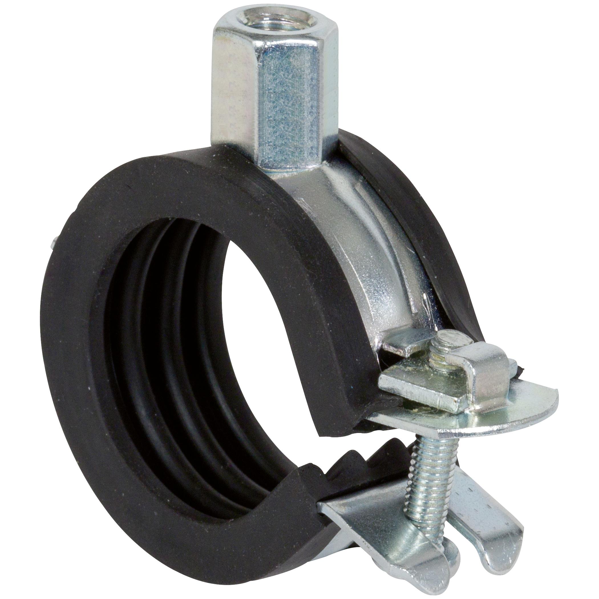 Die fischer Gelenkrohrschelle FGRS ist eine Rohrschelle mit einer Schraube aus galvanisch verzinktem Stahl der Werkstoffgüte DD11. Der Pendelschrauben-Schnellverschluss ermöglicht eine einfache und zeitsparende Einhandmontage. Das Einrasten des Sicherheitsverschlusses garantiert die sichere Justage des Rohres ohne das ein Aufspringen der Schelle. Damit können Rohre mit einem Außendurchmesser von 12 – 63 mm mit Gewindestange oder Stockschraube sicher im Innenbereich befestigt werden. Die Rohrschelle entspricht mit einer chlor- und silikonfreien Schalldämmeinlage den Anforderungen der DIN 4109.