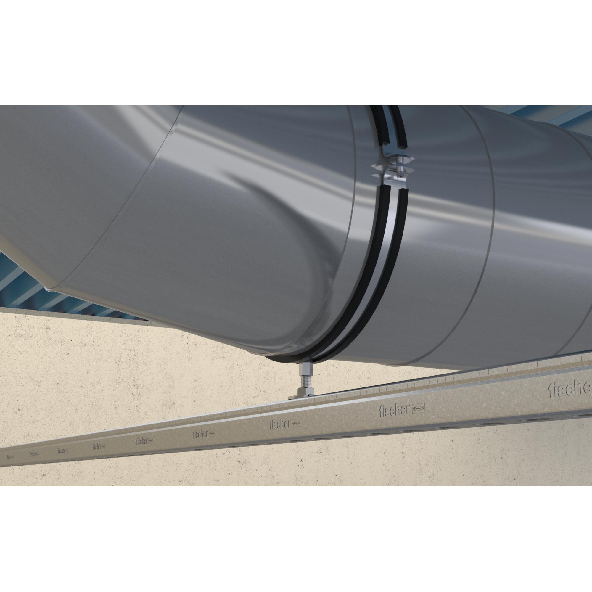 Die fischer Lüftungsrohrschelle LGS ist die ideale Befestigungslösung für Lüftungsrohre aller Art. Mit der LGS lassen sich insbesondere Wickelfalzrohre besonders einfach und schnell an den Untergrund befestigen. Dabei erlaubt der große Öffnungswinkel ein einfaches Einlegen der Rohrleitung, während die Zweischraubigkeit der LGS eine optimale Anpassung an den Rohraußendurchmesser ermöglicht. Die LGS ist ab 450 mm Durchmesser an beiden Schellenhälften gelocht. Dies ermöglicht mit 2 Gewindestangen mit Muttern eine Verdoppelung der empfohlenen Last. Die Schalldämmeinlage sorgt für zuverlässige Schallentkopplung zum Baukörper.