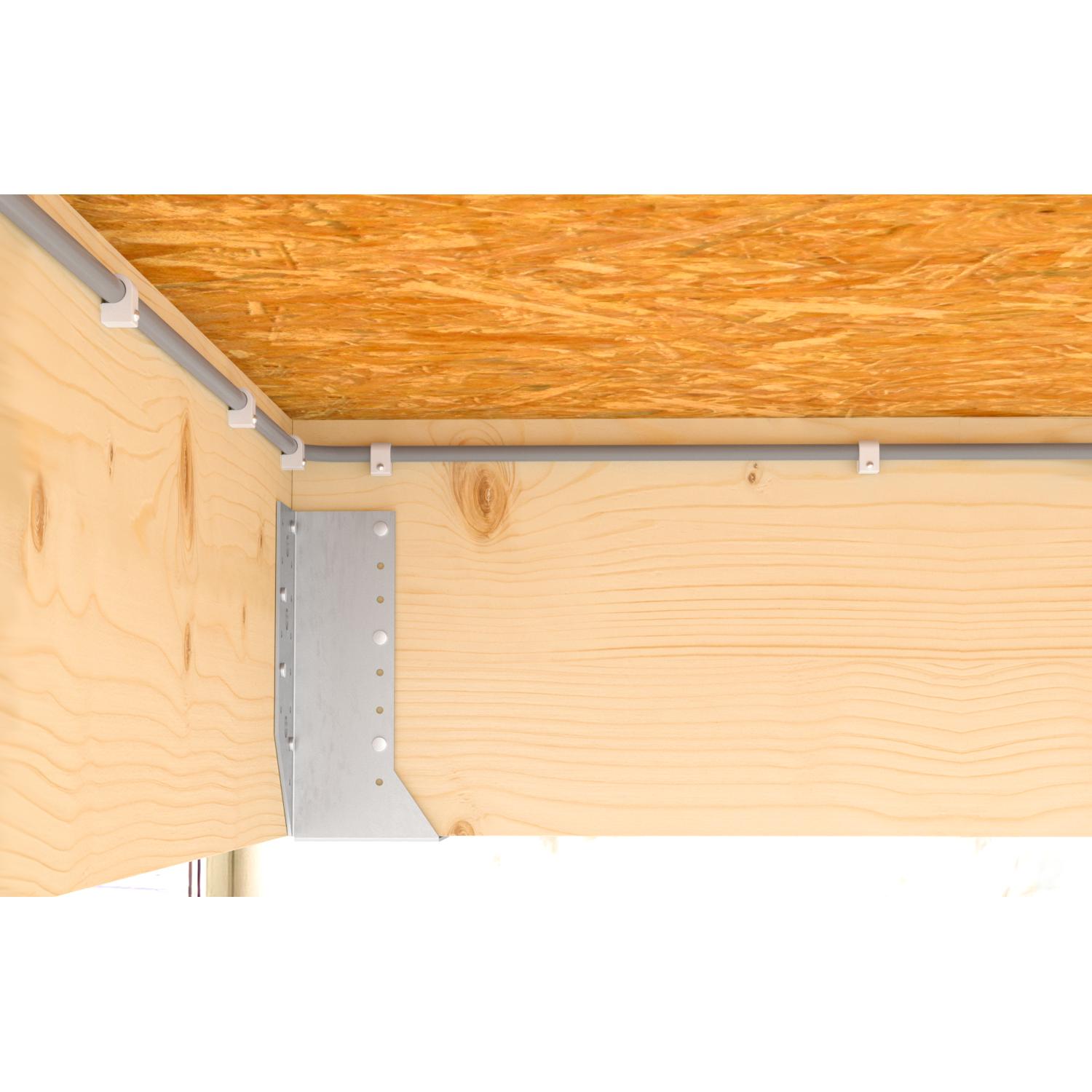 • Der vormontierte galvanisch verzinkte Nagel der Nagelschelle ermöglicht ein schnelles Befestigen und reduziert die Montagezeit.