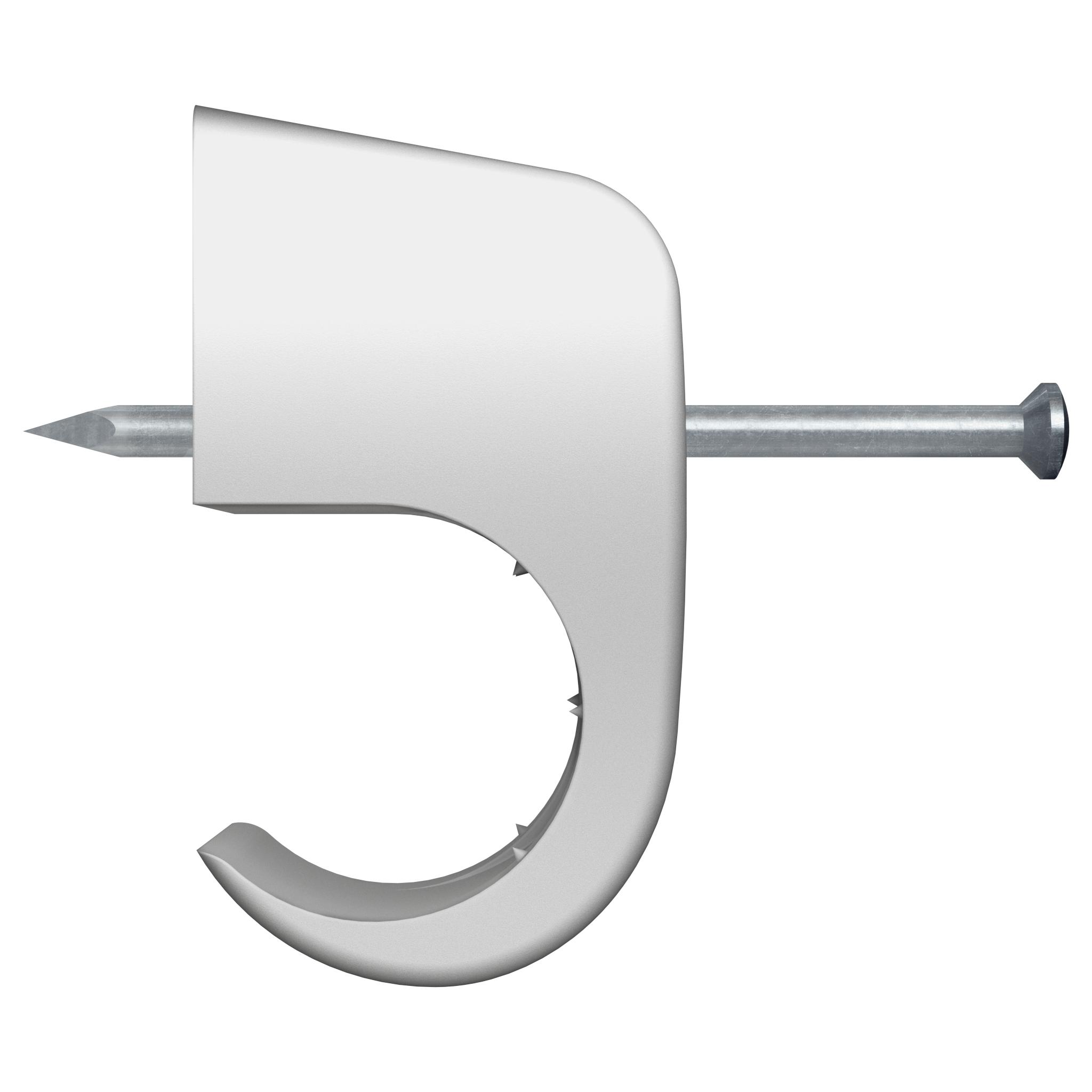• Die Nagelschelle mit eingelegtem Kabel positionieren. Vormontierten Nagel mit dem Hammer einschlagen.