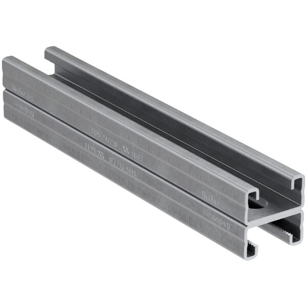 Die hochwertige fischer Montageschiene FUS 21D/2,0 – 3 m fvz, ist eine C-Profil-Montageschiene zur Herstellung von sicheren horizontalen und vertikalen Installationen. Ermöglicht die schnelle und rationelle Befestigung von Rohrsträngen und Tragkonstruktionen. Länge 3000 mm. Die Schienengeometrie gewährleistet die Verwendung des umfangreichen fischer Zubehörsortiments. Die ausgeprägte Verzahnung in der Schiene bietet der Schiebemutter sicheren Halt bei vertikalen Montagen und hohen Querlasten. Verschiedene Schienen-Wandstärken erlauben eine wirtschaftliche Schienenauslegung. Die Skalierung auf den Montageschienen vereinfacht das Ablängen und Platzieren der Bauteile. Langlöcher in der Schiene ermöglichen mehr Flexibilität bei der Montage der Anbauteile.