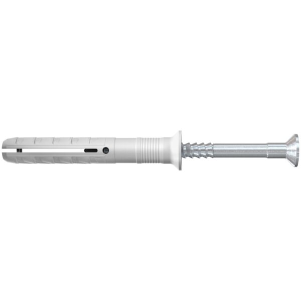 Der fischer Nageldübel N-S mit Senkkopf besteht aus einem hochwertigen Nylondübel und einer galvanisch verzinkten Nagelschraube. Diese sind für eine schnelle Montage bereits vormontiert. Der Nageldübel wird in der zeitsparenden Durchsteckmontage durch das Anbauteil eingeführt. Beim Einschlagen der Nagelschraube spreizt die Dübelhülse auf und verankert sicher im Baustoff. Der fischer Nageldübel N-S mit Senkkopf ist ideal für die Befestigung von Holzkonstruktionen in allen Baustoffen im Innenbereich.